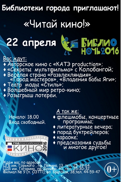 «Ленинка» объявила свою программу проведения «Библионочи». 22 апреля все желающие смогут встретиться с Евгением Водолазкиным и пройтись по закрытому книгохранилищуТема «Библионочи» 2016 года — «Читай кино». Поэтому на вечер 22 апреля РГБ приготовила программу, которая должна прийтись по вкусу и тем, кто любит читать, и тем, кто любит смотреть.