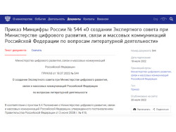 На сайте Министерства цифрового развития, связи и массовых коммуникаций РФ опубликован приказ о создании Экспертного совета.