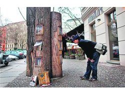 В Берлине создали первую общественную библиотеку в виде… шкафа.Используя старые поваленные деревья, энтузиасты соорудили несколько необычных объектов, которые сразу привлекли к себе всеобщее внимание.