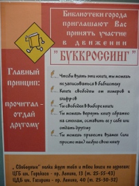 Одним из инновационных направлений работы ЦГБ им.Горького в 2009 году стала организация работы по распространению движения буккроссинга в нашем городе.
