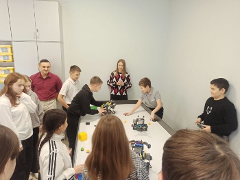 А руководитель центра «IT-куб» Алексей Саладай рассказал школьникам об основах конструирования и программирования роботов, а также показал модели роботов, которые представлены в центре.